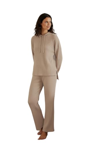 Trendyol - طقم بيجاما Thmaw22Au0334 محبوكة ومضلعة بغطاء رأس للنساء من ترينديول، رمادي داكن