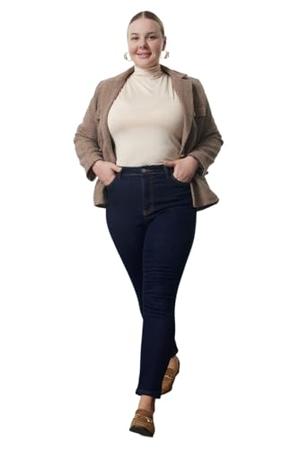 Trendyol - بنطلون جينز ضيق لطراز Tbbaw25Cj00016، بخصر مرتفع لاسترداد شكل الخصر بمقاس كبير للنساء من ترينديول، بلون أزرق غامق، (عبوة من 1 قطعة)