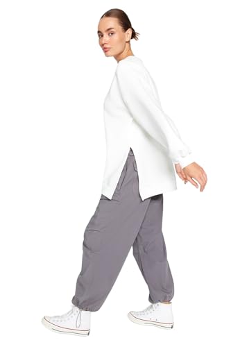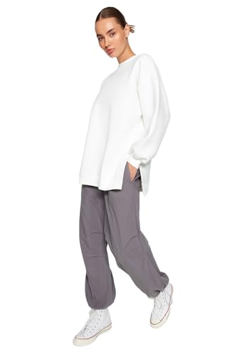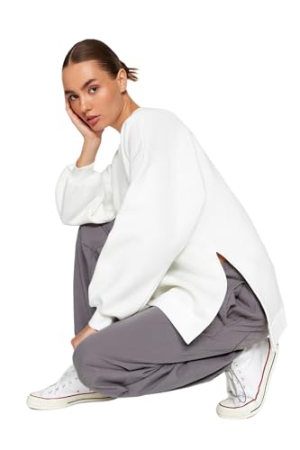 Trendyol - ترنديول سويت شيرت محبوك للنساء مقاس كبير/واسع من الصوف السميك بفتحة من الداخل، موديل TWOAW23SW00195 (عبوة من قطعة واحدة)