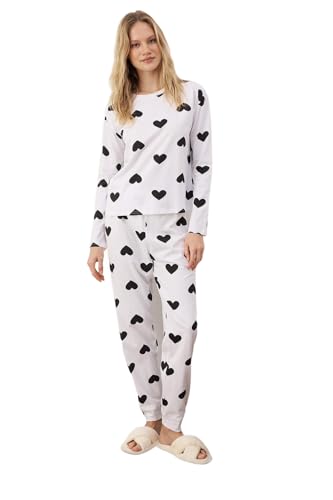 Trendyol - طقم بيجامة نسائية من ترينديول، بنقشة قلوب، مصنوع من القطن بنسبة 100%، طراز THMAW21PT0566، لون أسود، 1 قطعة