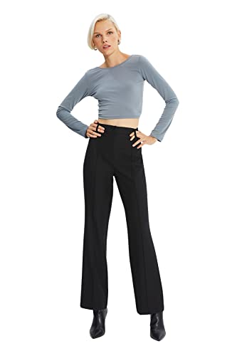 Trendyol - ترنديول بنطلون مضلع عالي الخصر للنساء TWOSS21PL0093