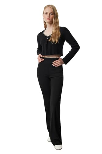 Trendyol - ترنديول بنطلون محبوك قابل للتمدد بخصر مرتفع للنساء - بنطلون اسود بارجل اسبانية TWOAW25PL00006 (عبوة من قطعة واحدة)