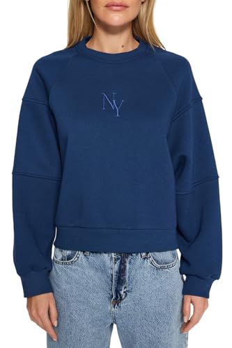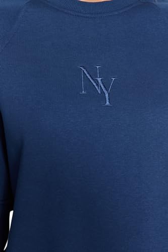 سويت شيرت منسوج برقبة دائرية ضيقة وقصة عادية من الصوف السميك مطرز من الداخل، لون ازرق نيلي، طراز TWOAW24SW00199