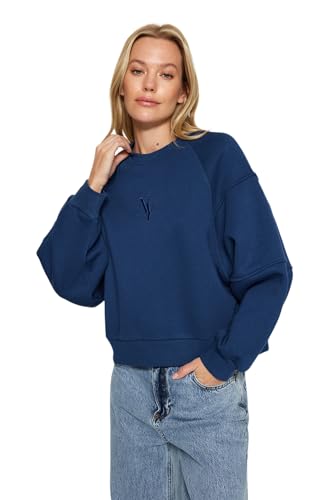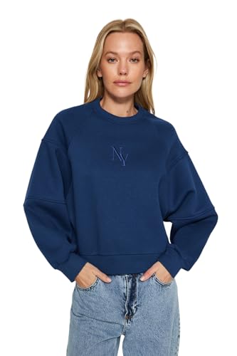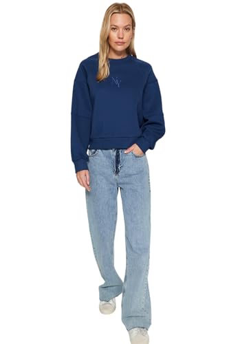 Trendyol - ترنديول سويت شيرت محبوك للنساء برقبة دائرية ضيقة وقصة عادية مطرز من الصوف السميك من الداخل TWOAW24SW00199 (عبوة من قطعة واحدة)