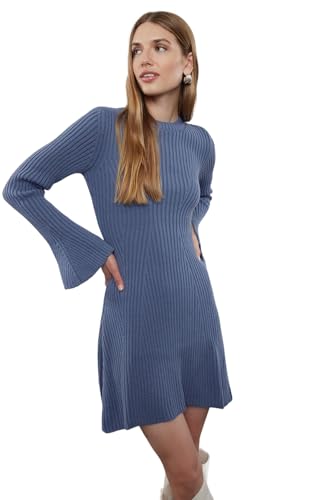 Trendyol - ترنديول فستان قصير منسوج بقصة ايه لاين للنساء من انديجو - Twoaw25el00030 (عبوة من قطعة واحدة)