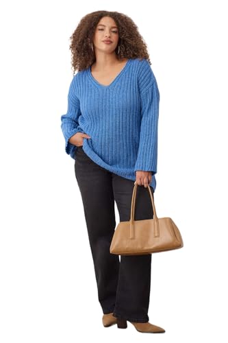 Trendyol - ترنديول سويتر تريكو مضلع بقصة واسعة وقبة V للنساء بلون ازرق نيلي Tbbaw25An00023 مقاس كبير (عبوة من قطعة واحدة)