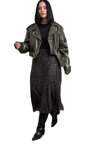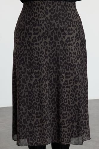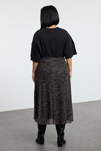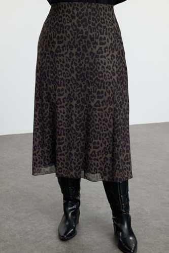 Trendyol - جيبة TBBAW25AZ00006 للنساء، منسوجة بنقشة جلد الفهد ومصنوعة من التول بقصة ايه لاين من ترينديول، لون كاكي، مقاس كبير