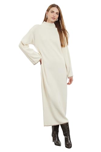Trendyol - فستان Tctaw25eb00001 محتشم محبوك طويل بيج بتفاصيل خياطة للنساء من ترينديول، 1 قطعة