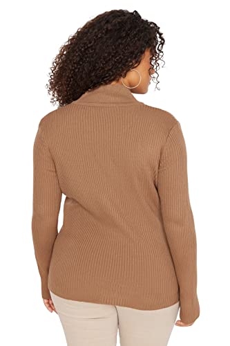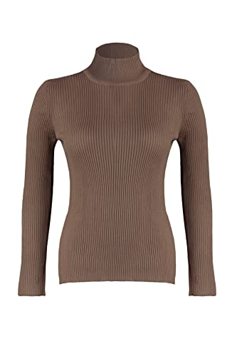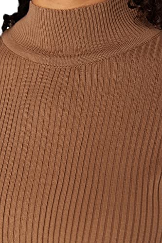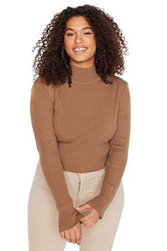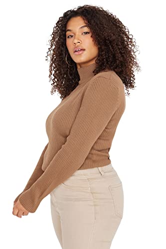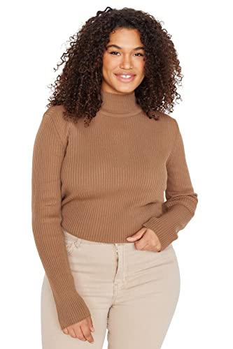 Trendyol - ترنديول سويتر محبوك رفيع برقبة دائرية ونصف رقبة دائرية للنساء TBBAW23AN00022 مقاس كبير (عبوة من قطعة واحدة)