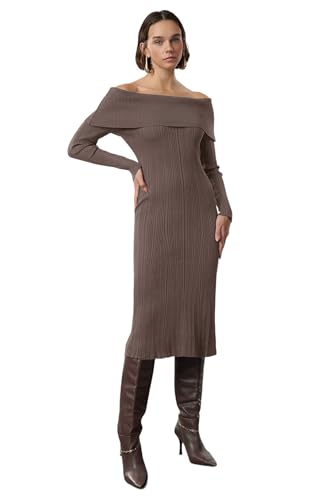 Trendyol - فستان بيسيك منسوج شليخت متوسط الطول بياقة كارمن للنساء موديل Twoaw25el00033 من ترنديول (عبوة من قطعة واحدة)