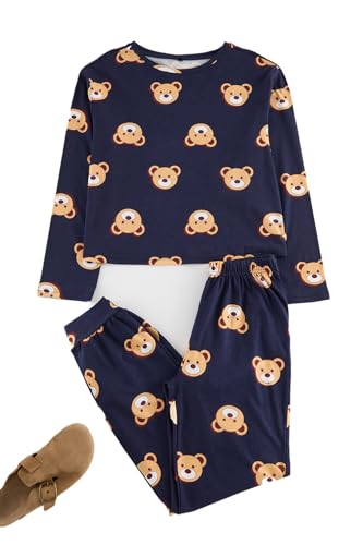 Trendyol - بيجامة منسوجة من القطن بنسبة 100% بطبعة دب تيدي للنساء Thmaw23Pt00514 من ترينديول (عبوة من قطعة واحدة) لون كحلي