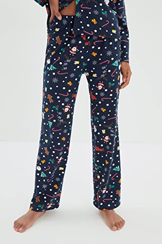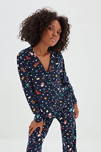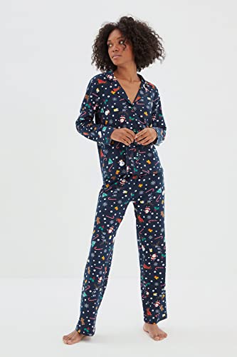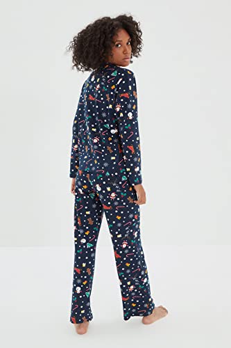 Trendyol - طقم بيجاما نسائي مصنوع من القطن بنسبة 100%، بنمط شتوي محبوك، موديل Thmaw22Pt1212، عبوة من 1 قطعة، لون أزرق كحلي من ترينديول