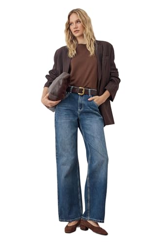 Trendyol - بنطلون جينز بخصر مرتفع وساق واسعة للنساء Twoaw24Je00089 من ترينديول، أزرق كحلي، 1 قطعة