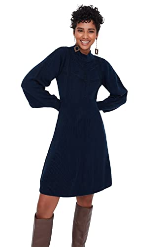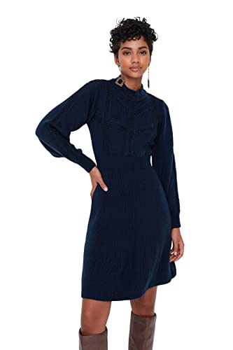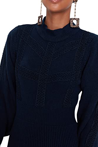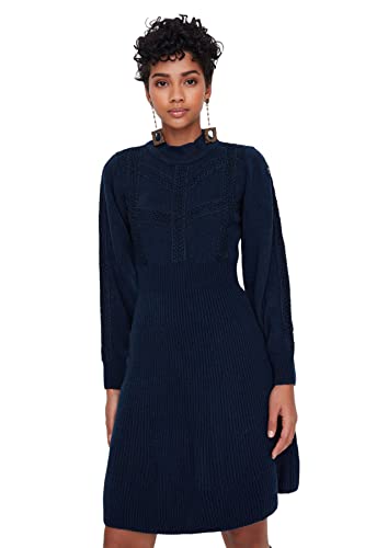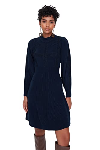 Trendyol - ترنديول فستان قصير محبوك من الدانتيل للنساء بلون كحلي Twoaw22El0011 (عبوة من قطعة واحدة)
