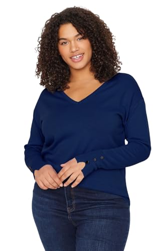 Trendyol - ترنديول سويتر صوف للنساء بقبة V وازرار مقاس كبير Tbbaw23An00043 (عبوة من قطعة واحدة)