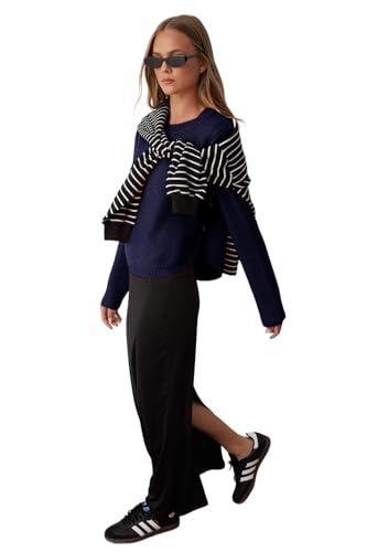 Trendyol - ترنديول سويتر صوف ناعم منسوج بتفاصيل ازرار للنساء بلون كحلي Twoaw26Kz00098