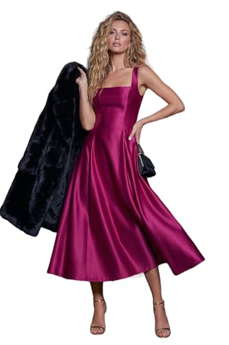 Trendyol - فستان سهرة أنيق منسوج من الساتان بقصة ايه لاين للنساء بلون برقوقي Tpraw25El00040، عبوة من قطعة واحدة من ترنديول