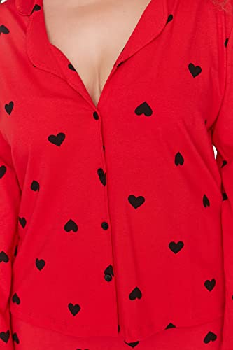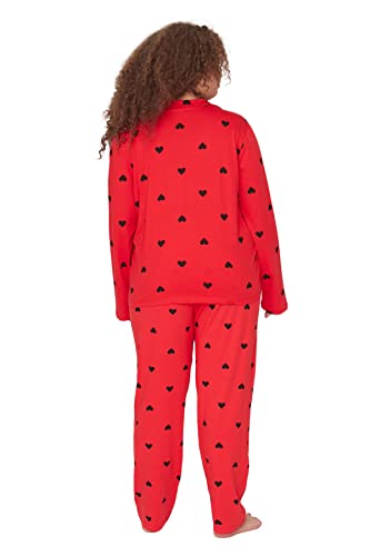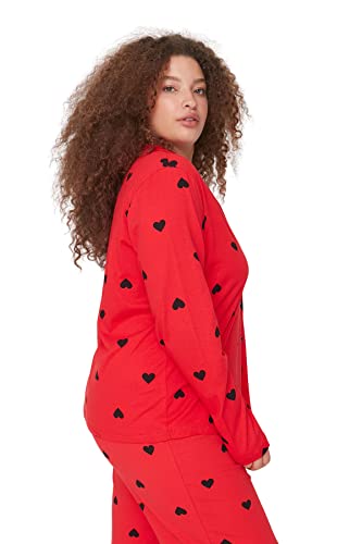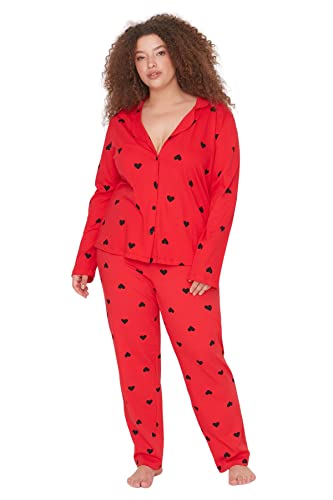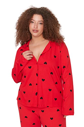 Trendyol - طقم بيجامة TBBAW23AI00019 منسوجة بمقاس كبير ومزينة بتصميم قلب وياقة قميص للنساء من ترينديول، قطعة واحدة، أحمر