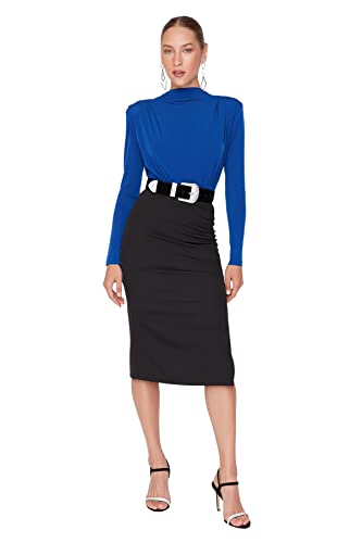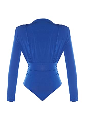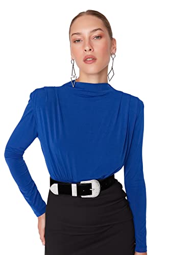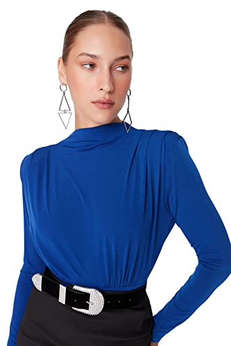 Trendyol - بودي للنساء موديل TWOAW20BD0011 من ترينديول، بياقة عالية وكباسين، مصنوع من نسيج محبوك مضلع