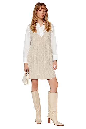 Trendyol - ترنديول فستان جيليه محبوك قصير مضفر للنساء Twoaw24El00097 (عبوة من قطعة واحدة)