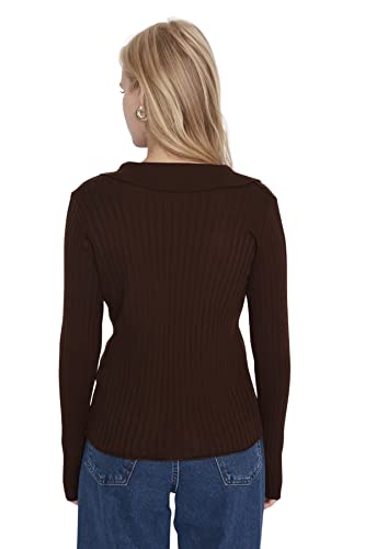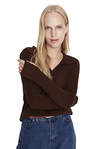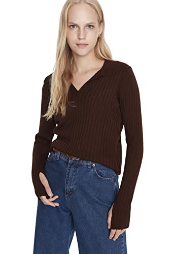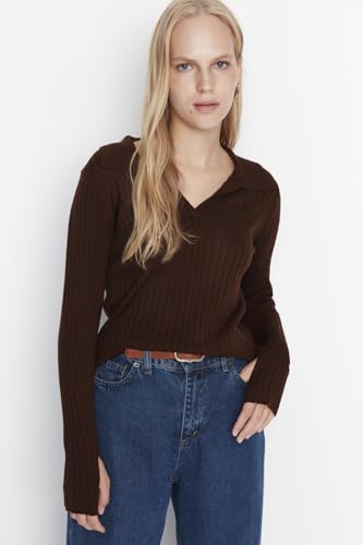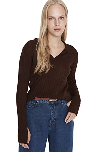 Trendyol - بلوفر سادة بقصة ضيقة وياقة مطوية للنساء من ترنديول (عبوة من قطعة واحدة)