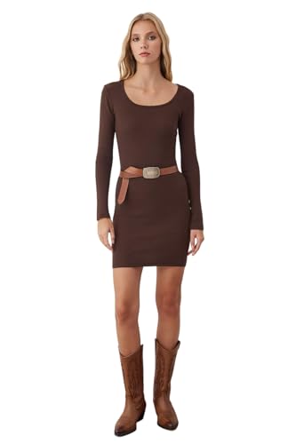 Trendyol - فستان نسائي من ويبليش كلايد براون*001 (عبوة من قطعة واحدة) من ترنديول