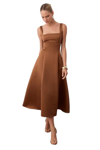 Trendyol - فستان نسائي للحفلات والزفاف بلون بني من ترنديول (عبوة من قطعة واحدة)