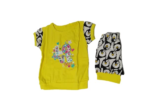 Generic - بيجامة ترنج بناتي بيبي أطفال - صيفي - قطن - مكون من تيشيرت و شورت - لون أصفر (3)