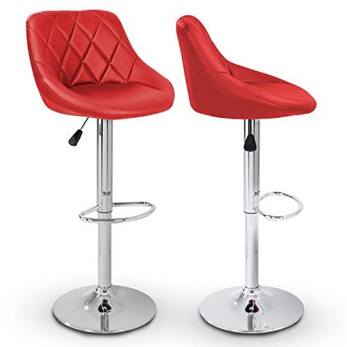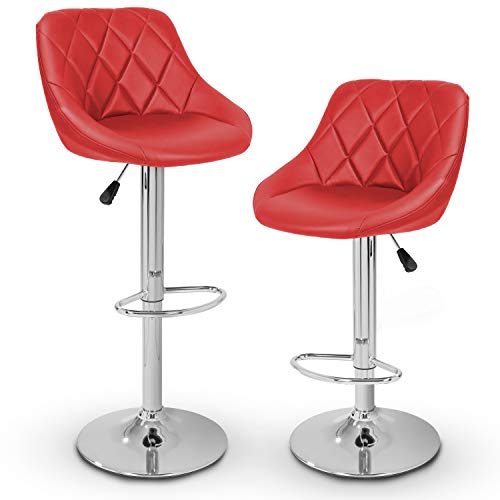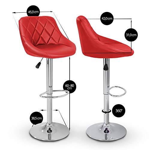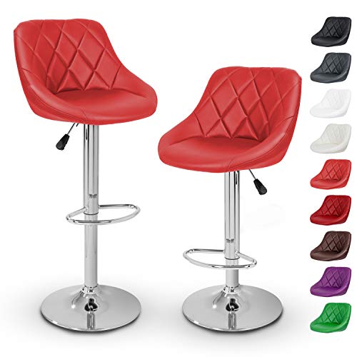 TRESKO - طقم كراسي بار مع مسند ظهر من تريسكو | جزء خارجي من الجلد | رفع غاز دوار قابل للتعديل والتعديل | مسند قدم من الكروم | متوفر بـ 10 الوان (2 × احمر داكن)