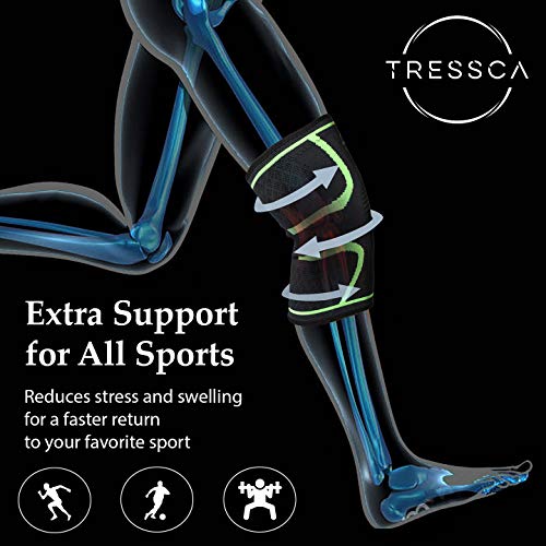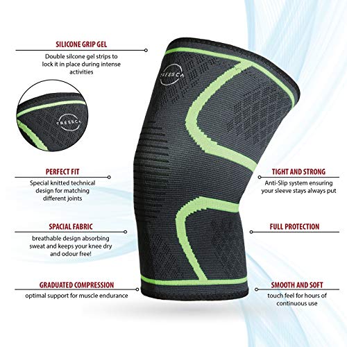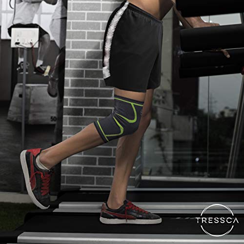 TRESSCA - دعامة ركبة من النايلون مع دعم ضاغط للركبة للرضفة لتتخفيف آلام الركبة وحمايتها في أثناء الجري ورفع الأثقال من تريسكا، أخضر، لارج