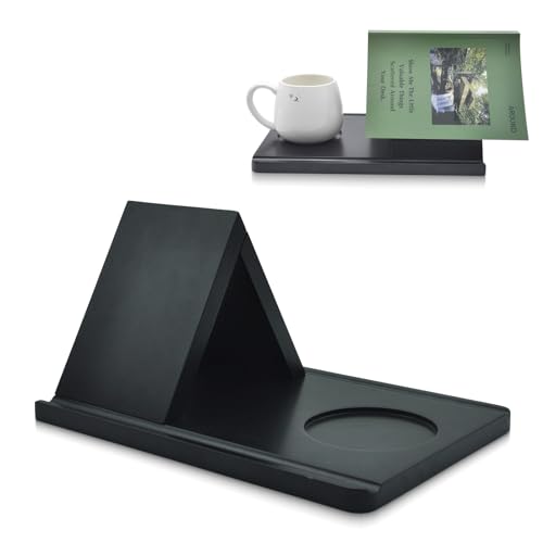 magic sewing machine - حامل كتب مثلث مع حامل اكواب، زاوية كتب خشبية للقراءة مع مسند للكتب، هدايا لمحبي الكتب والقهوة، حافظة رف كتب صغيرة لغرفة النوم والمنضدة والمكتب وديكور المكتبة - اسود