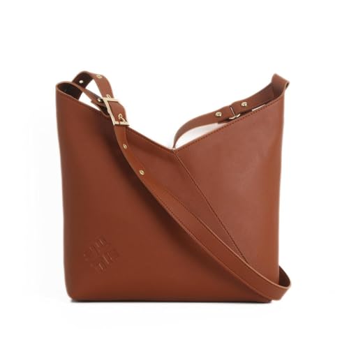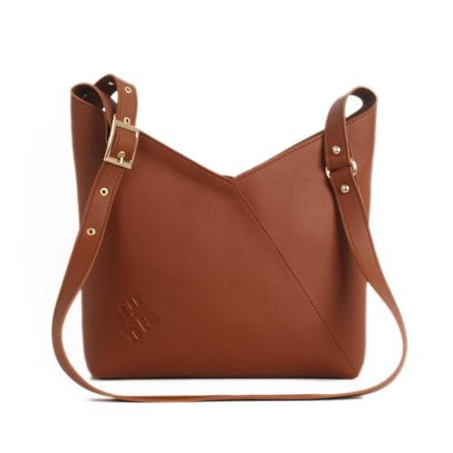 Generic - شنطة كتف من الجلد بتصميم مثلثات وحزام كروس بلون بني هافانا