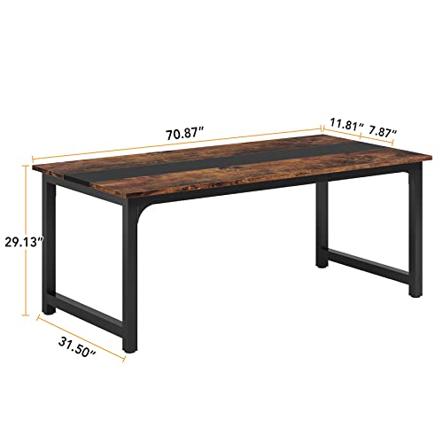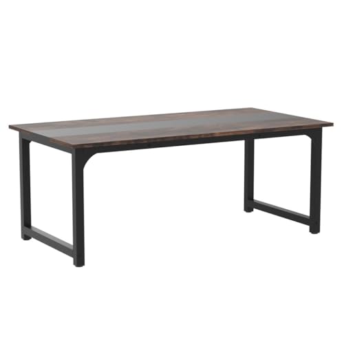 Tribesigns - طاولة طعام مستطيلة للمطبخ لـ 6-8 أشخاص بطراز صناعي أنيق لغرفة الطعام والمطبخ وغرفة المعيشة مع أرجل معدنية شديدة التحمل من ترايب ساينز، مقاس 1.80 م × 80 سم، لون بني