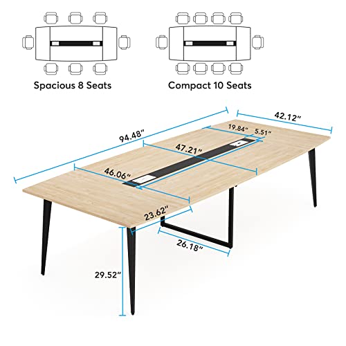 Tribesigns - طاولة مؤتمرات واجتماعات بتصميم شكل قارب مع حلقة تثبيت مستطيلة بتصميمات عصرية للمكتب والاجتماعات والندوات من ترايب ساينز، 2.40 متر طول × 1.20 متر عرض × 75 سم ارتفاع - (لون خشب حبيبي فاتح)
