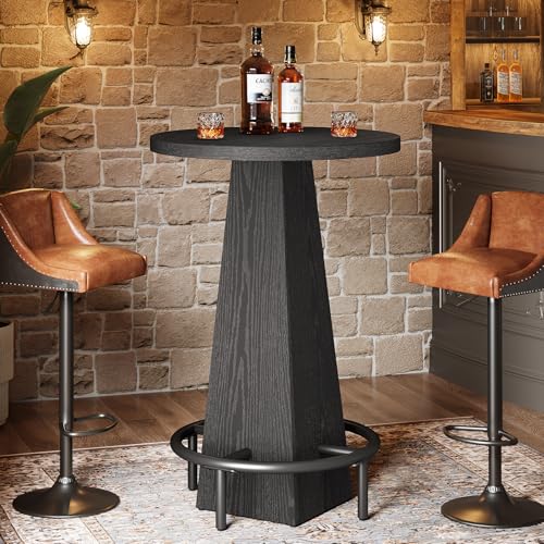 Tribesigns - ترايب ساينز طاولة بار مستديرة بارتفاع 37.4 انش للحانات الصغيرة وغرفة الطعام والمطبخ، لون اسود (طاولة فقط)