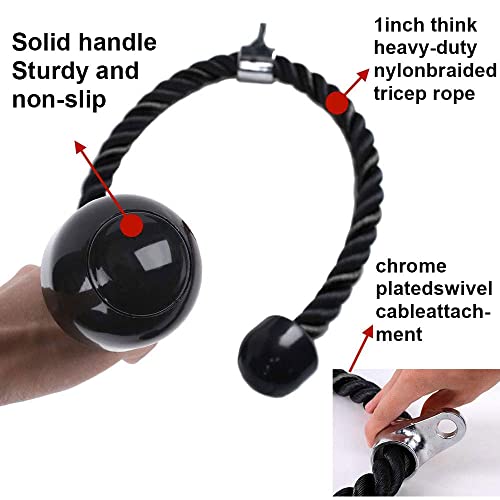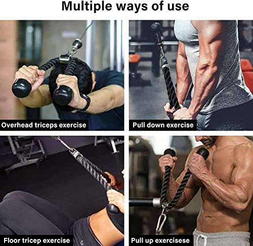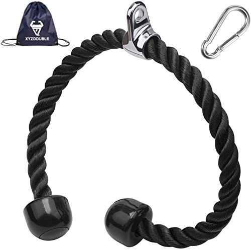 XYZDOUBLE - حبل سحب ثلاثي الرؤوس شديد التحمل مع مقابض غير قابلة للانزلاق لصالة الالعاب الرياضية المتعددة او التمارين المنزلية العضلة ذات الرأسين والعضلة ثلاثية ملحقات معدات تدريب قوة الذراع نايلون أسود