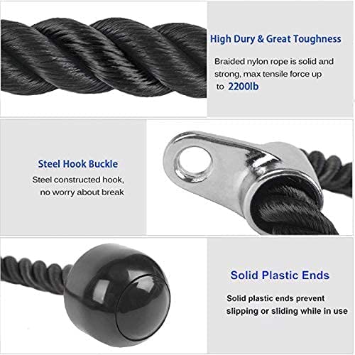 - 【حبل ثلاثي الرؤوس شديد التحمل】يبلغ طول حبل ثلاثي الرؤوس حوالي 90 سم (35.5 انش)، وقطر الحبل حوالي 3 سم. مصنوع من حبل نايلون مضفر ثقيل عالي الجودة، قوي ومتين للغاية، ليس من السهل أن يؤذي يديك.