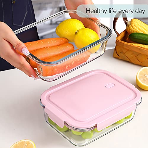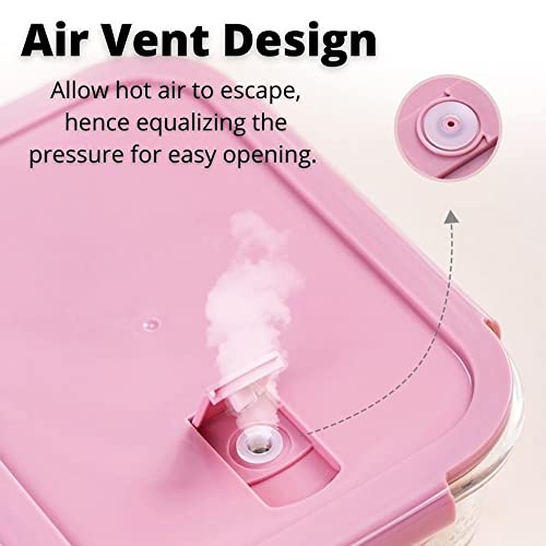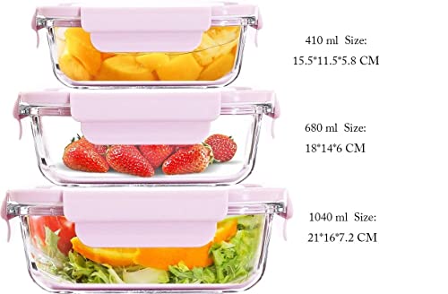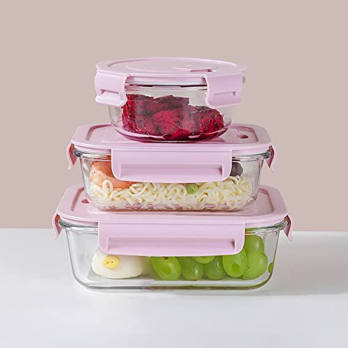 Generic - مجموعة حاويات تخزين الطعام الزجاجية بأغطية مزودة بقفل كبس، مانعة للتسريب مناسبة لتحضير الوجبات وتخزين الطعام والفريزر مع أغطية من ترايفيكتا (لون وردي، مجموعة من 3 قطع)