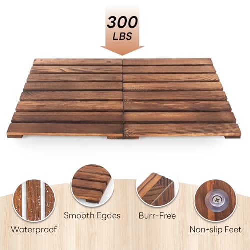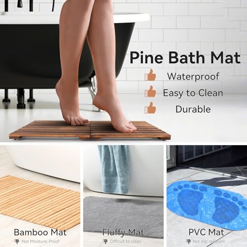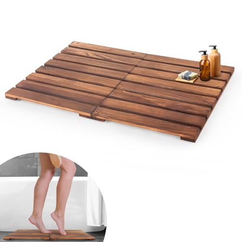 TRIFOLIC - دواسة حمام خشبية قابلة للطي من خشب البامبو والصنوبر، دواسة دش خارجية مانعة للانزلاق لحوض الاستحمام ومدخل الباب والمنتجع الصحي والسبا وحمام السباحة من تريفوليك
