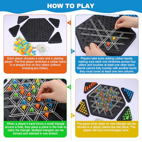 Starvortex - لعبة تريجل: أساتك مطاطية، لعبة شطرنج مثلثة بسلاسل، لعبة نوت لوجيك، لعبة شطرنج مثلثة بسلاسل، لعبة مثلثة بأشرطة مطاطية، من 2 إلى 4 لاعبين لحفلات الأطفال والعائلات