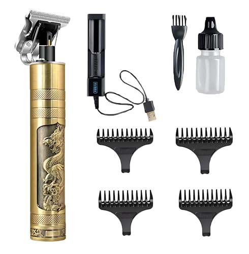 Generic - ماكينة حلاقة - ماكينة قص وتشذيب شعر احترافية قابلة لإعادة الشحن بتصميم زاوية R حادة، هيكل معدني محفور عليه تنين، محرك دوار منخفض الضوضاء، أداة تصفيف دقيقة وآمنة