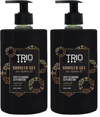 TRIO PRO - شاور جل الاستحمام من تريو برو، برائحة العود الملكي بفيتامين 5B للتنظيف والترطيب، 800 مل (عبوة من قطعتين)
