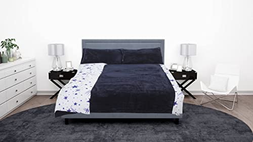 Snooze - لحاف ثلاثي (3 في 1) - لحاف صيفي وشتوي + صوف ناعم)، تصميم نجوم زرقاء