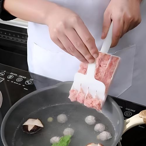 Generic - مغرفة كرات اللحم الثلاثية - صانعة مطبخ بيضاء غير لاصقة مع مجرفة قطع لتشكيل كرات اللحم وكرات الشمام