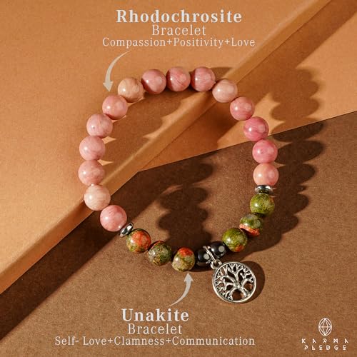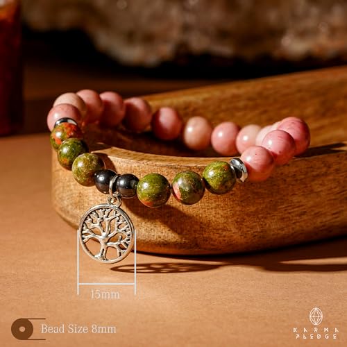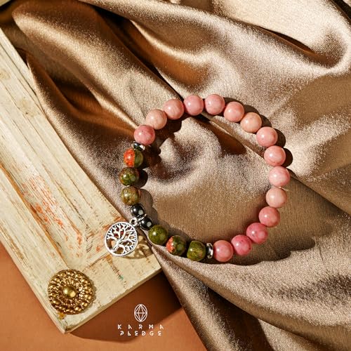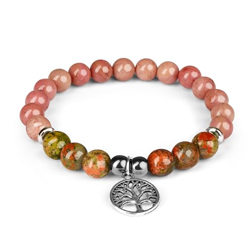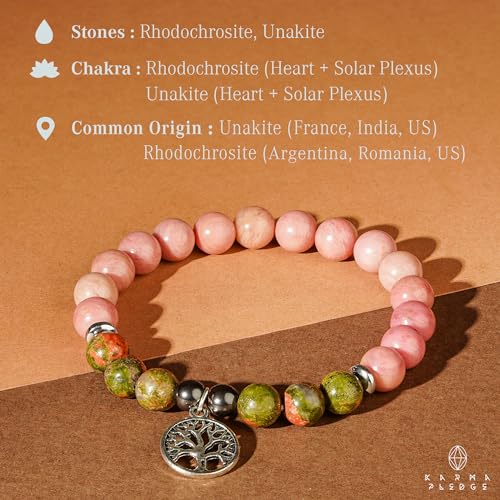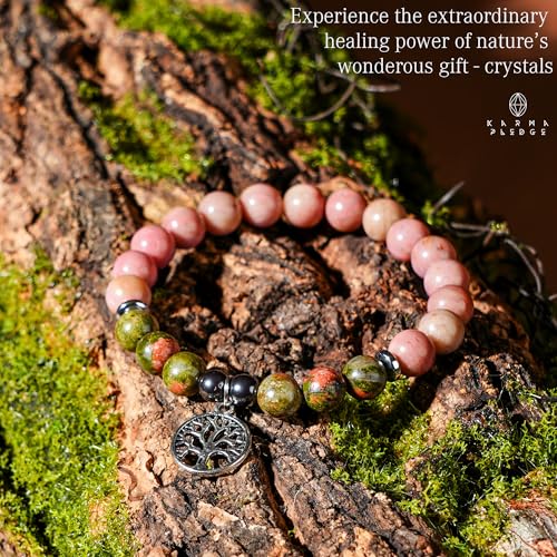 generic - سوار كريستال ثلاثي الحماية مصنوع يدويا من حجر الرودوسيت مع خرز كريستال يوناكايت ودلاية على شكل شجرة الحياة للنساء والرجال للطاقة الإيجابية والتوازن واليوجا والشاكرا والشفاء، هدايا كريستال
