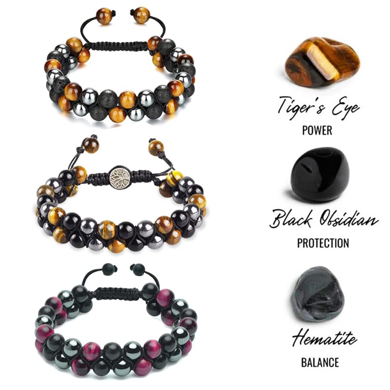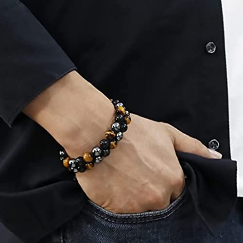 generic - اساور مصنوعة يدويا للحماية الثلاثية، اساور علاجية كريستال 10 ملم عين النمر وحجر الهيماتيت الاسود سوار مجوهرات سوار مجوهرات سوار للرجال والنساء، تغيير المصير يجلب السعادة الصحية والثروة