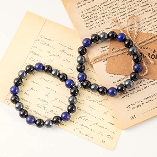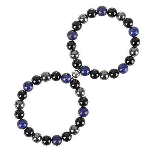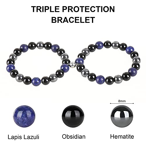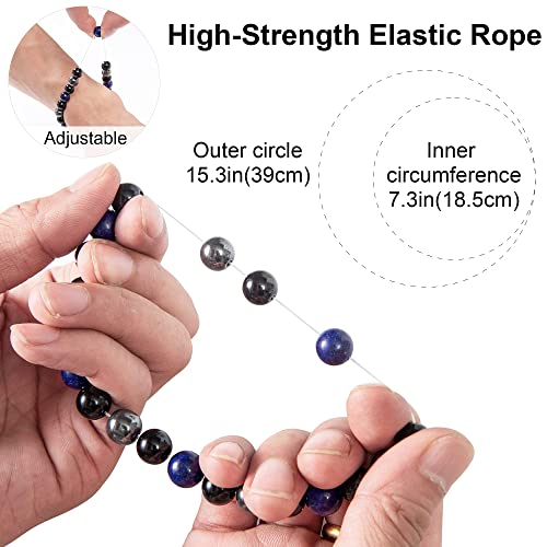 generic - سوار علاجي مغناطيسي من حجر عين النمر والزجاج البركاني الاسود بحماية ثلاثية للرجال والنساء (10 ملم)