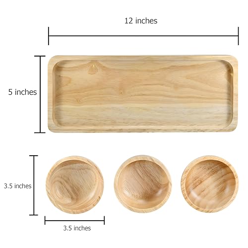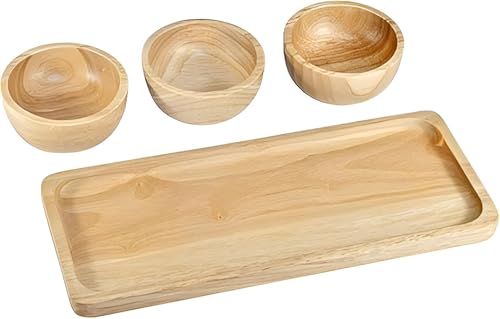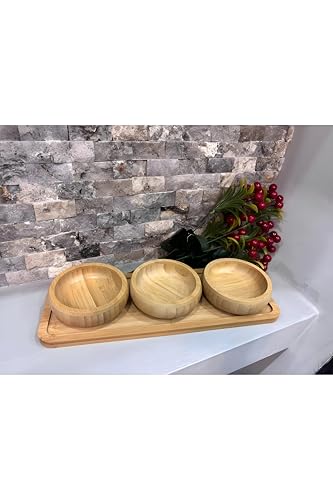 Generic - كوب وصحن وجبات خفيفة أنيق من خشب مطاط طبيعي للحفلات، أطباق عميقة خشبية متينة وأحجام مناسبة للوجبات الخفيفة لاستخدامات متعددة، لون بني، طقم ثلاثي