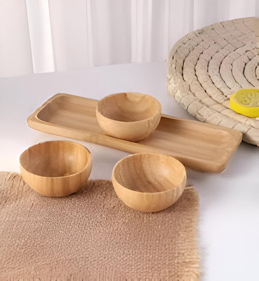 - مصنوعة من خشب شجرة المطاط المستدام وعالي الجودة، تجمع هذه الأكواب والبولات الخشبية بين الجمال الطبيعي والصداقة للبيئة، مما يجعلها خيارًا مثاليًا للمنازل المهتمة بالبيئة أو أماكن تناول الطعام التي تبحث عن جمالية ريفية وأنيقة.