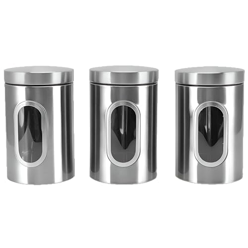 Generic - مجموعة ثلاثية - برطمانات تخزين من الستانلس ستيل مع نافذة شفافة واغطية محكمة الاغلاق، سعة 1.5 لتر، لون فضي، حزمة من 3 قطع للشاي والسكر والحبوب والمكسرات